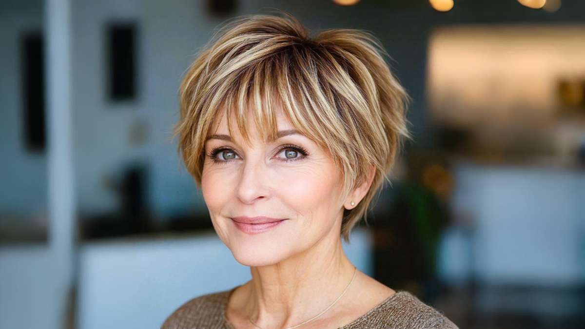This voluminous feathered pixie is perfect for women who crave movement and lightness in their hairstyle. The cool blonde color with soft beige tones adds warmth without being too golden. Styled with a volumizing mousse and directed to one side, this look gives body and bounce to finer hair types. The feathered layers make it easy to maintain and incredibly flattering for square, oval, and heart-shaped faces. It’s a confident, cheerful look that balances ease and beauty. Ideal for daily wear or casual events, this cut requires minimal upkeep while keeping a chic silhouette throughout the day.