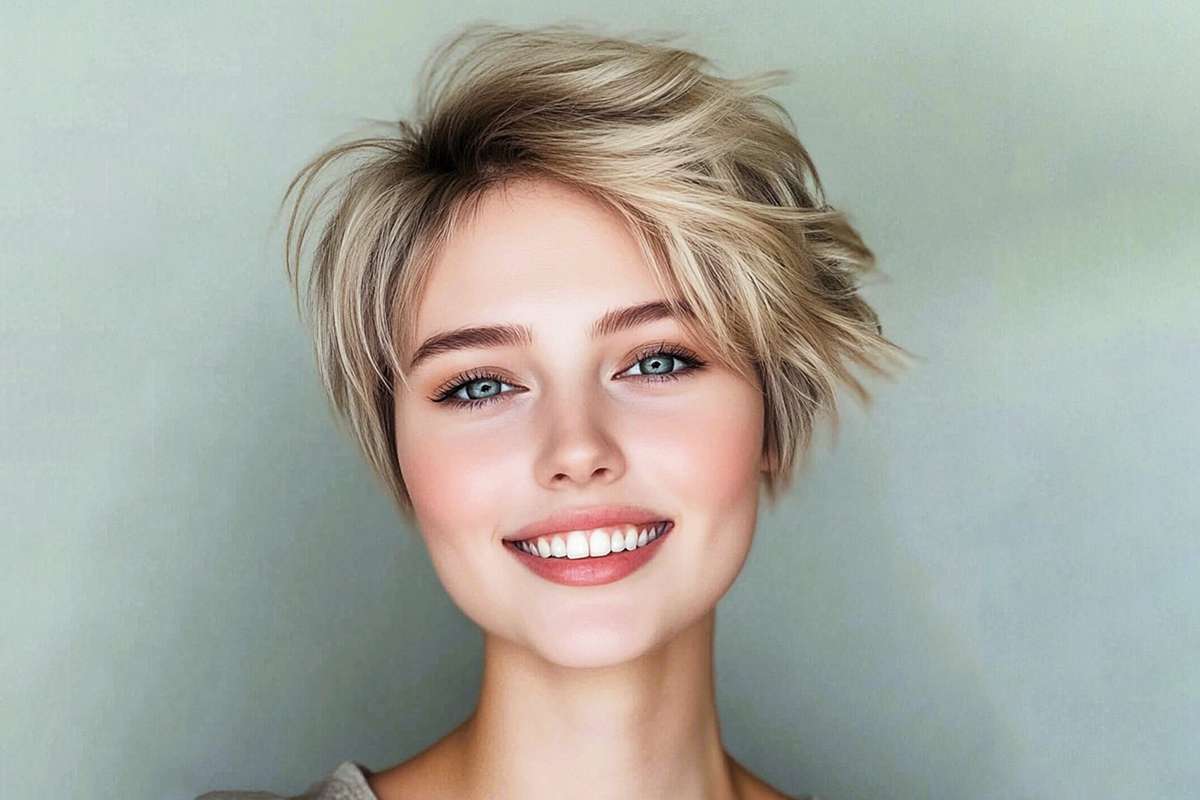 A tousled blonde bob is the perfect combination of carefree and polished. This style features choppy ends that add movement and texture, making it ideal for those who love an effortless, lived-in look. Achieve the tousled effect by using a salt spray and scrunching the hair gently. This hairstyle flatters various face shapes and is a go-to choice for anyone seeking a versatile short haircut with a fresh appeal.