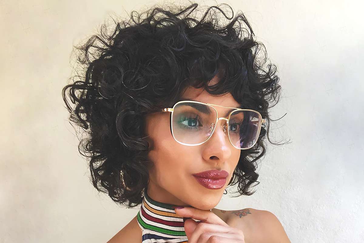 Curly Bob with Retro Glasses for a Vintage Vibe